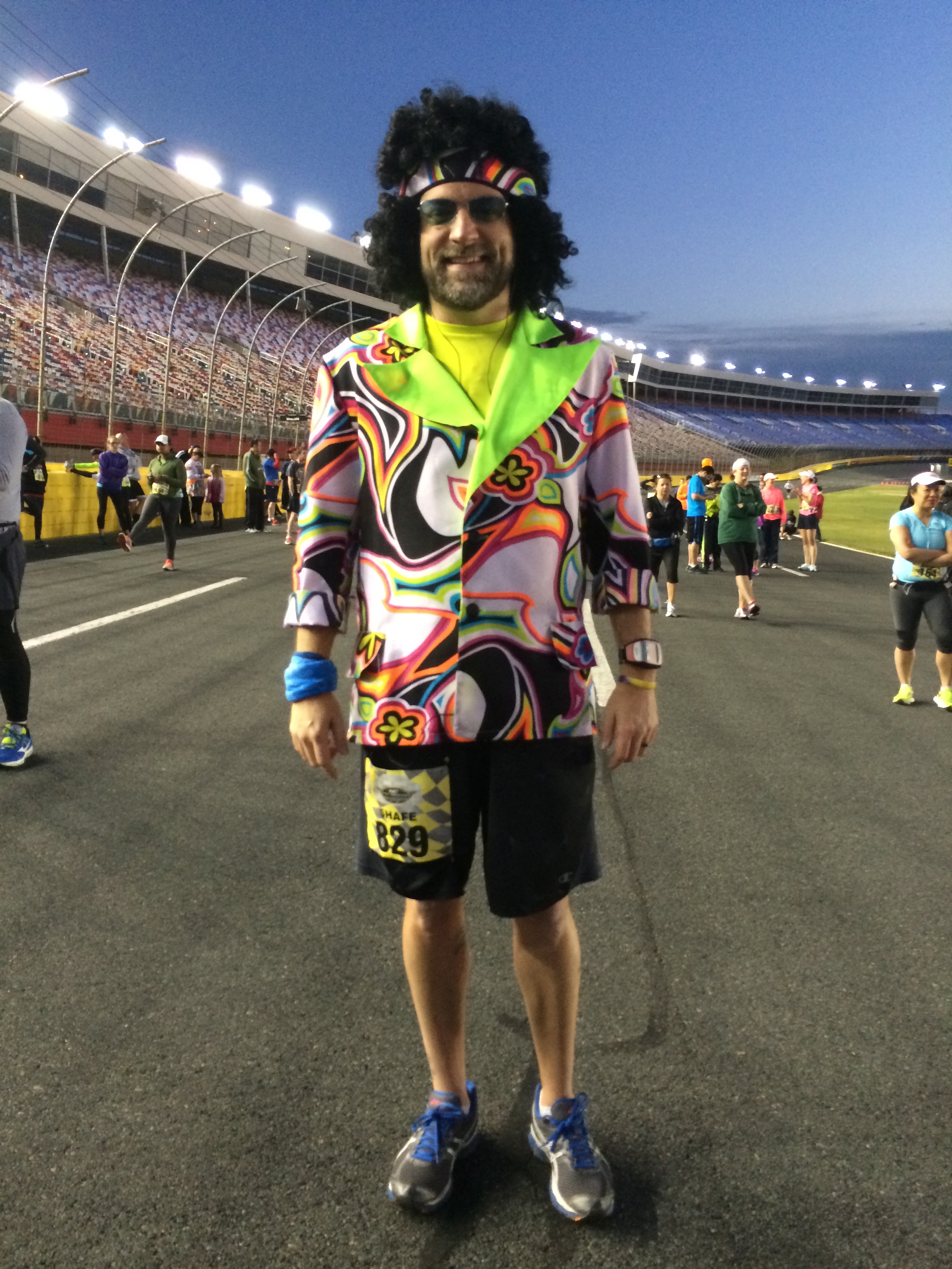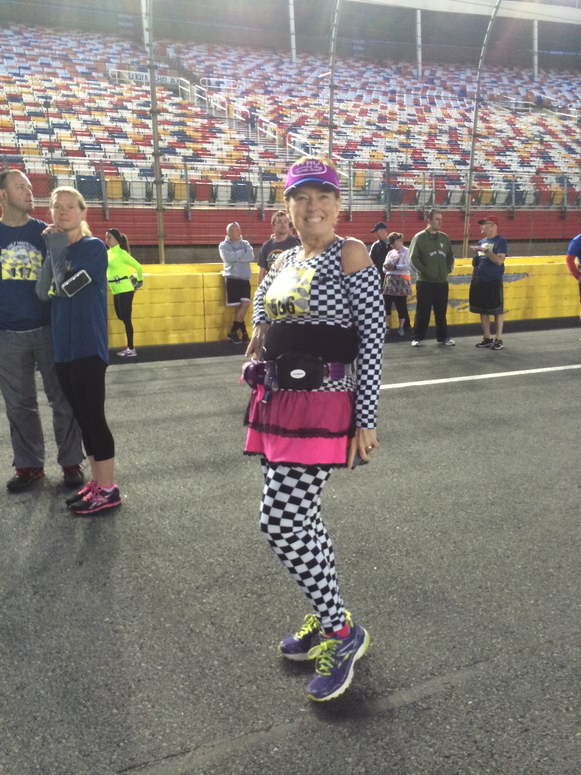 ts for the 5k and that is where we took this selfie. He’s a cutie but not a runner. We ended up walking the 5k on the track and finishing in about 45 minutes but it was fun . It’s cool to walk where the drivers actually race and to see the asphalt, looking at the skid marks on the walls and ogling all the cool cars parked in the infield. It makes you feel like an insider.